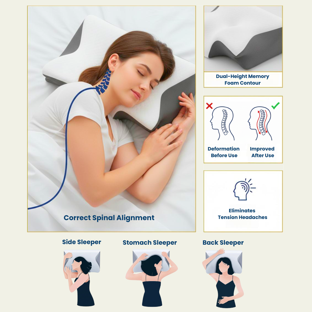 The Problem: Chronic Pain. Traditional pillows force cervical misalignment, leading to neck cricks, shoulder stiffness, and tension headaches.