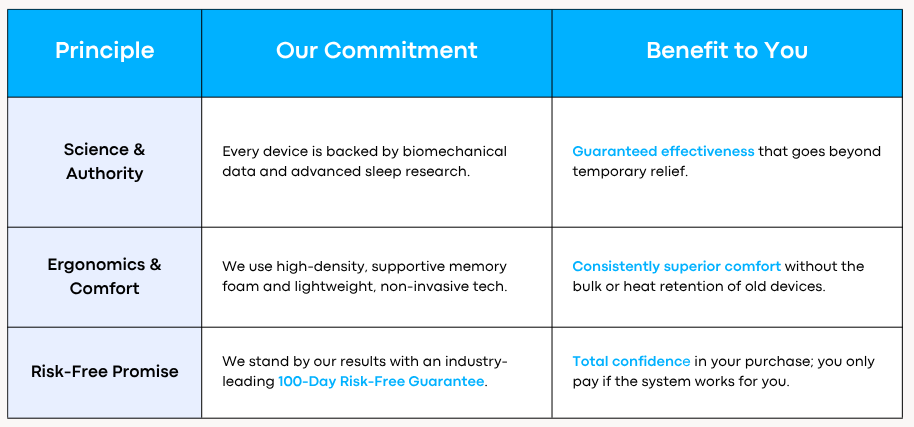 We realized the problem wasn't the customer; it was the solutions. No single pillow or strip can fix a problem rooted simultaneously in Airway weakness, Spinal misalignment and Mental stress.
