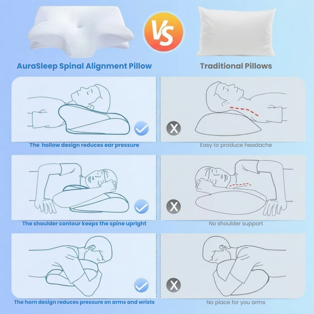 The AuraSleep™ Pillow is the antidote. Designed by biomechanical experts, our proprietary Dual-Height Memory Foam is engineered to instantly find your body's neutral spine position, providing proven, stabilizing support for side, back, and even difficult stomach sleepers.